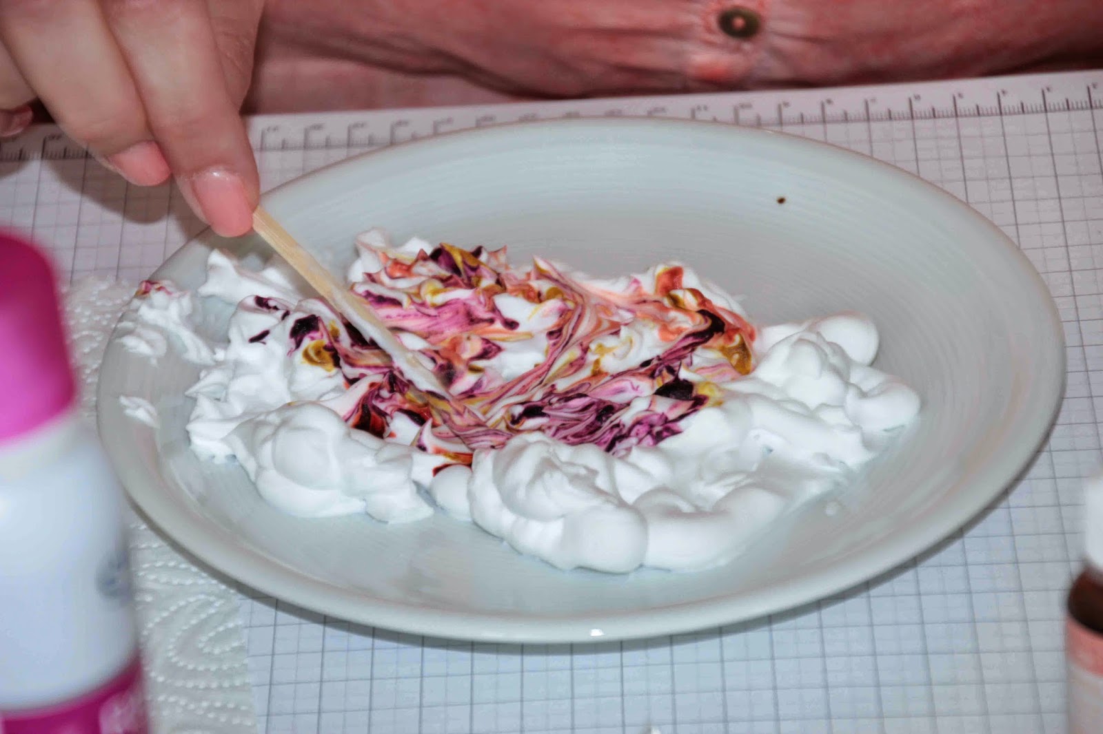 Bei dieser Technik wird auf den Rasierschaum einige Tropfen von der gewünschten Nachfülltinte getropft und leicht vermischt.